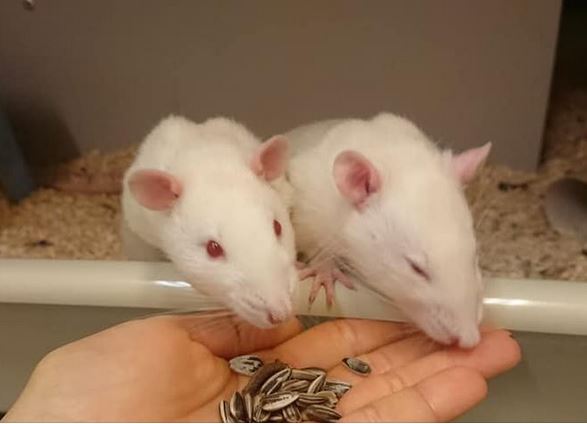 Sie entsprechen normale, aber sehr große Farbratten. Es sind reine Albino-Ratten mit meist dunkelroten Augen, mit einer normalen Lebenserwartung wie Farbratten.